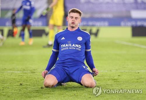 epa08942805 Harvey Barnes of Leicester celebrates after scoring the 2-0 lead during the English Premier League soccer match between Leicester City and Southampton FC in Leicester, Britain, 16 January 2021. EPA/Alex Pantling / POOL EDITORIAL USE ONLY. No use with unauthorized audio, video, data, fixture lists, club/league logos or 'live' services. Online in-match use limited to 120 images, no video emulation. No use in betting, games or single club/league/player publications.