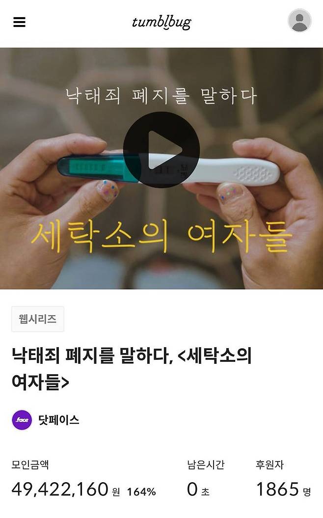(※닷페이스는 지난해 출판사 봄알람과 함께 낙태죄 폐지를 주제로 웹다큐 시리즈 제작을 지원해달라는 펀딩을 열었다. 프로젝트명 ‘세탁소의 여자들’. 여기에는 1865명이 참여해 약 5천만원을 후원했다.)