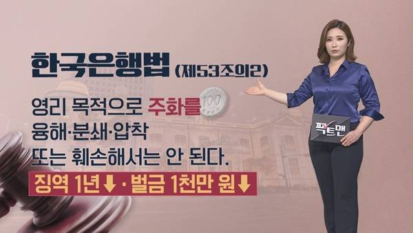 과거 구릿값이 올라 10원짜리 구형 동전을 녹여 파는 일이 발생하자 처벌 근거를 마련하려고 2011년 처벌 조항이 생긴 건데요.