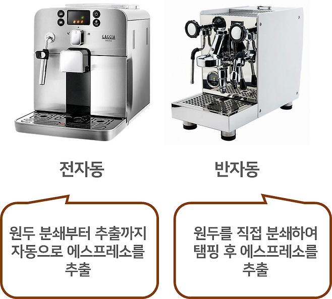 전자동과 반자동 방식의 커피머신이