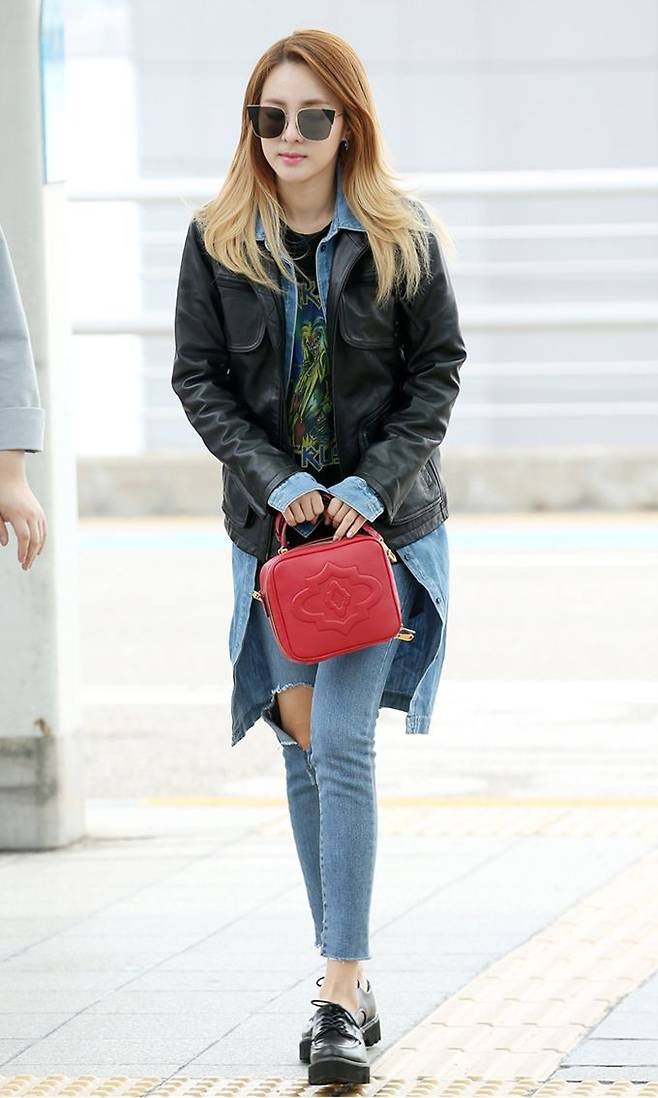 이날 산다라박은 무릎이 파진 디스트로이드 진과 데님 롱 셔츠에 가죽 재킷을 매치해 시크하면서도 유니크한 무드의 어반시크 룩을 선보였다. 특히 비비드한 컬러의 「오야니」 크로스백을 포인트로 착용해 스타일리시한 매력을 뽐내 많은 이의 시선을 사로잡았다.