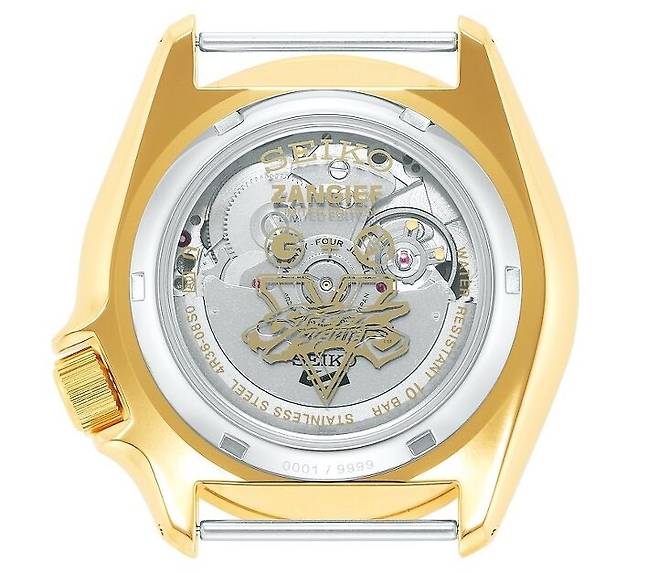 전 모델 공통적으로 케이스 직경은 42.5mm, 두께는 13.4mm이며, 전면 글라스는 하드렉스 크리스탈을 사용했습니다. 방수 사양은 100m로 실용적이고, 4,800 암페어(A/m) 정도의 항자 성능도 보장합니다. 무브먼트는 시간 외 날짜와 요일 표시 기능을 갖춘 인하우스 자동 칼리버 4R36를 탑재했습니다(진동수 3헤르츠, 파워리저브 41시간). 시스루 형태의 케이스백을 통해 무브먼트 역시 감상할 수 있으며, 스트리트 파이터 V 로고와 함께 각 시계에 영감을 준 캐릭터명을 프린트해 의미를 더했습니다.