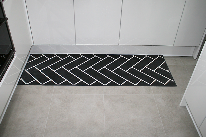 헤링본 패턴의 발매트로 깔았어요.