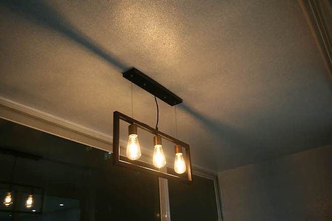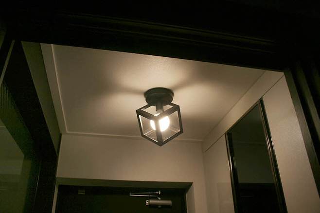 베란다 천장에는 액자식 조명을 달아서