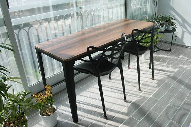 베란다에는 테이블과 의자를 놓아