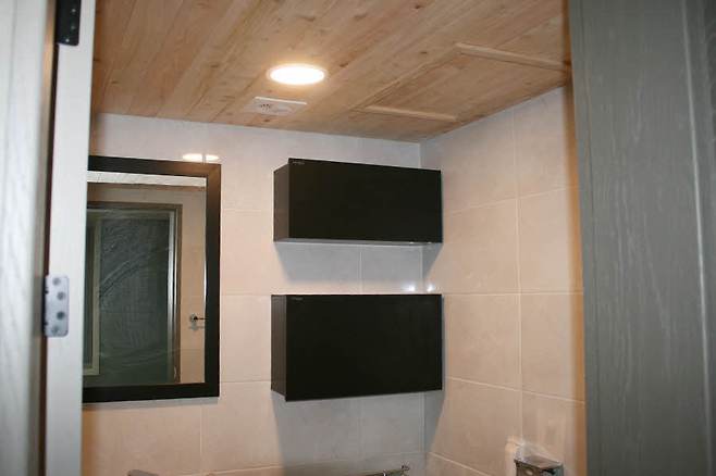 천장에는 편백나무로 마감해서