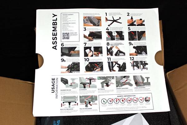 조립설명서를 꺼내면 등 받침대가 바로 자리 잡고 있다. 시크릿랩 오메가 2020 시리즈 소프트위브 패브릭 차콜 블루는 혼자서도 충분히 조립할 수 있는 난이도를 갖고 있지만 등 받침대를 비롯해 부품의 무게가 어느 정도 나가기 때문에 혼자보다는 두 명이 조립을 한다면 더 손쉽게 조립할 수 있다.