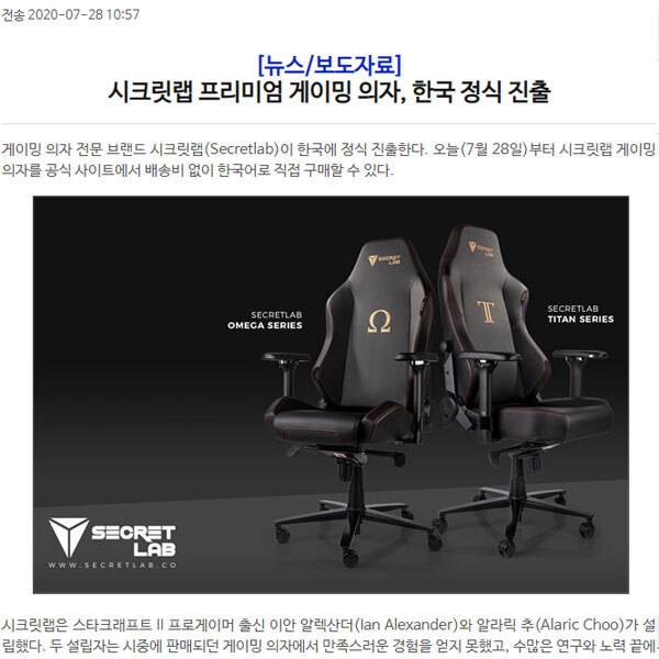 하지만 해외에서 시크릿랩은 게이밍 체어 분야에서 꽤 호평을 받는 브랜드다. 그도 그럴 것이 시크릿랩의 공동 설립자 이안 알렉산더와 알라릭 추는 두 명 모두 스타크래프트2 프로게이머 출신이었다. 누구보다 장시간 의자에 앉아있던 프로게이머 둘이 설립한 회사라는 점에서도 시선이 간다.