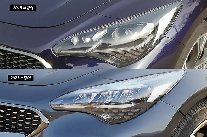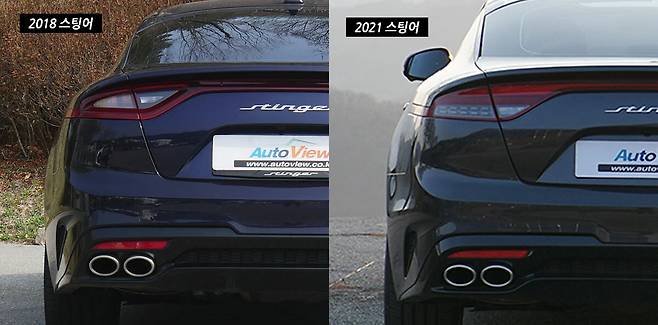 이제 스팅어를 보자. 디자인 변경은 미미하다. GT 콘셉트의 양산형 버전인 만큼 페이스리프트를 통해 디자인을 바꾸는 것은 전통성을 해친다고 생각했을 것이다. 아니면 변화에 대한 의지가 없었을지도 모른다.