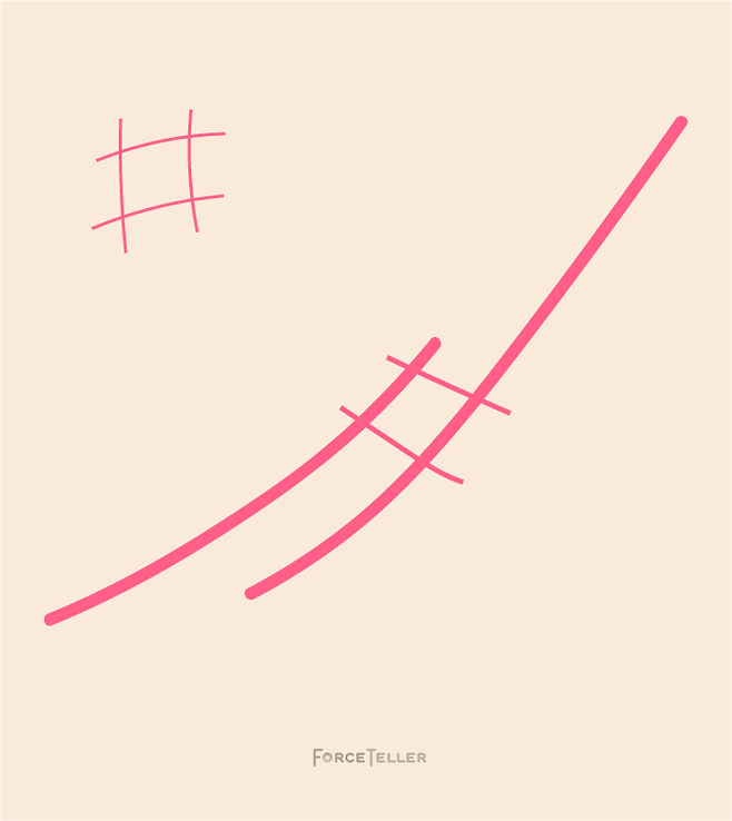 만약 하나로 이어져 있었던 선이 끊기기 시작하는 모습을 보인다면, 지금 당신의 행동이 운에 좋지 않은 영향을 미치고 있다는 뜻이니 주의해야 한답니다. 이 경우에는 지금 내가 하는 말과 행동들을 유심히 생각해 볼 필요가 있어요.