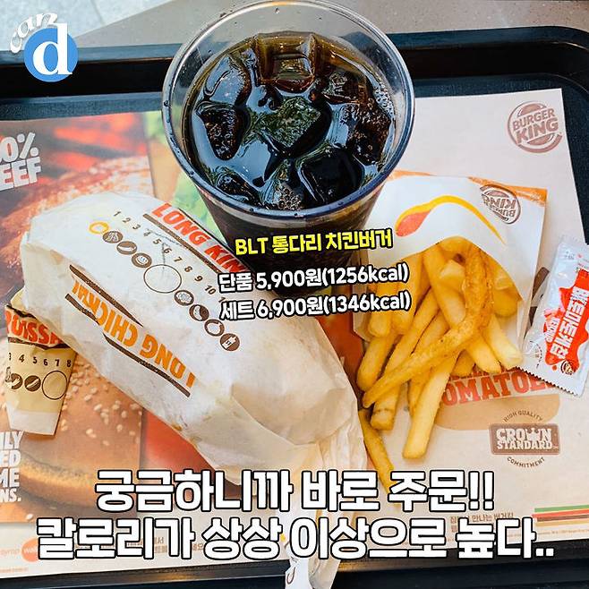 드디어 나온 BLT통다리 치킨버거! 칼로리가 많이 높네요.