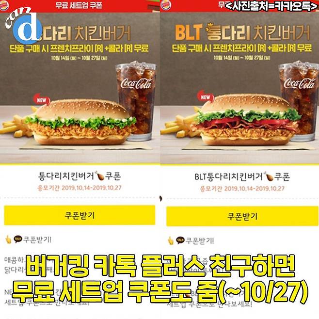 무료 세트업 쿠폰을 직원에게 보여주면 오는 27일(일)까지 단품 가격에 프렌치프라이(R)와 콜라(R)까지 즐길 수 있다네요.