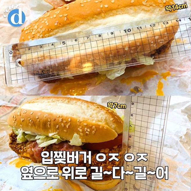 옆으로 긴 치킨버거. 무려 14cm 길이를 자랑했습니다.