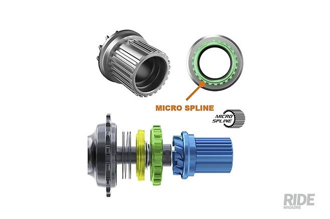 시마노 XTR 9100 그룹셋의 가장 큰 변화라면 기존 11단까지 유지되던 프리허브 바디 방식이 마이크로 스플라인(Micro spline)이라는 새로운 독자 규격으로 바뀌었다는 점이다.