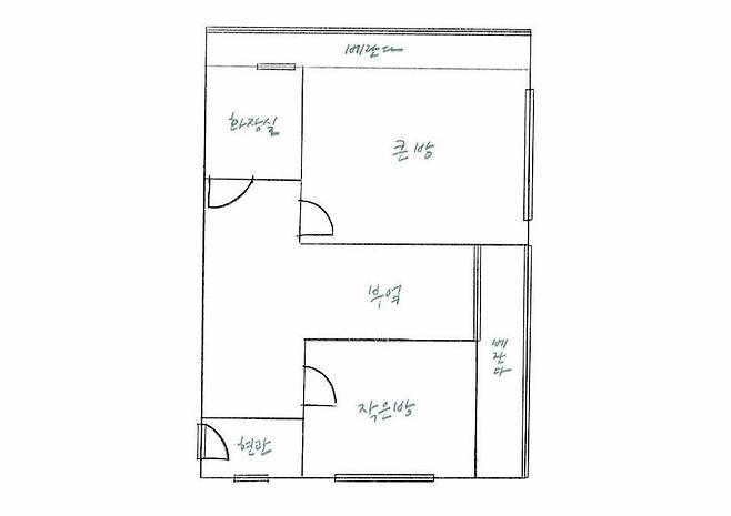 지금 살고 있는 집은 20평 빌라에요. 1996년에 지어져, 저와 나이가 비슷하답니다. 주방 겸 거실, 큰 방, 작은방, 화장실 그리고 베란다 2곳으로 이루어져 있어요.