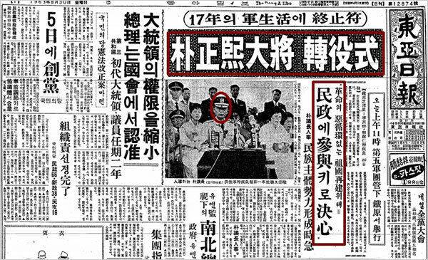 박정희는 1963년 8월 군에 복귀한다는 ‘혁명 공약’과 달리 강원도 철원의 제5군단 비행장에서 전역식을 치르고 예비역 육군 대장으로 예편했다.