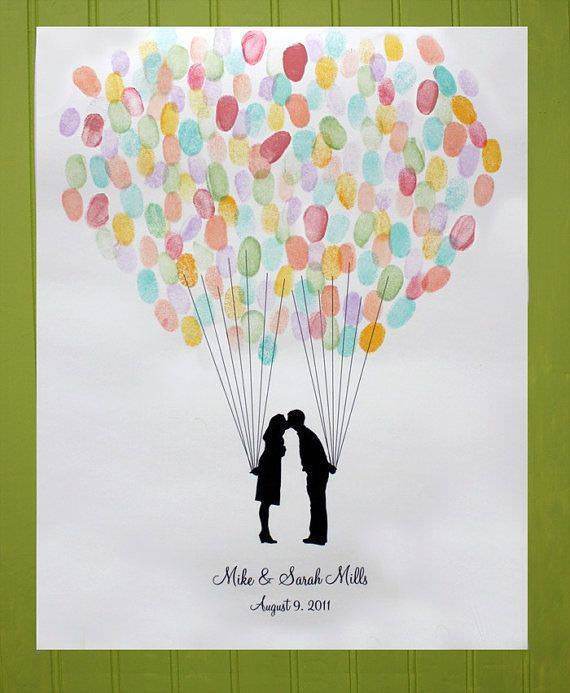 이렇게 예쁜 방명록 보셨나요? 검정 싸인펜으로 이름 석자 쓰는 방명록이 아니라 결혼식에 참석한 하객들이 알록달록한 지장을 찍어 하나의 거대한 풍선을 만드는 예쁜 방명록입니다.