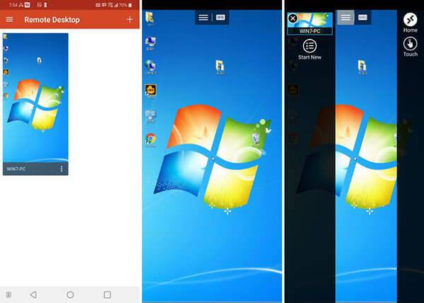스마트폰에서 데스크톱 PC로도 연결할 수 있는데, 이를 위해서는 앱을 설치해야 한다. 현재는 안드로이드와 iOS 모두 지원하고 있으며, 설치 후 앱에서 연결할 PC의 이름을 입력 후 PC의 로그인 암호를 추가 입력해서 접속할 수 있다. PC나 스마트폰에서 원격으로 연결되어 있는 동안 제어 받는 PC는 로그인 화면으로 빠져나와 있기 때문에 동시에 사용할 수는 없으며, 스마트폰에서 컨트롤할 때에는 마우스 커서를 활성화해서 할지, 스마트폰의 터치 인터페이스를 그대로 사용할지를 선택할 수 있다. 모바일 앱이 한글을 지원하지 않는 점은 다소 아쉽다.