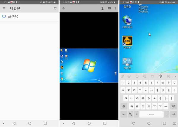스마트폰으로 PC를 원격 제어하려면 앱을 설치해야 한다. 안드로이드와 iOS를 지원하며, [Chrome 원격 데스크톱] 앱을 설치하고 제어하려는 PC에 생성된 핀을 입력해서 접속할 수 있다. 구글 계정을 연동해 연결하기 때문에 동일한 계정을 사용하는 PC는 리스트로 표시되어 바로 접속할 수 있으며, 터치 모드와 마우스 커서 모드를 선택할 수 있다. 키보드 입력이 필요할 때에는 메뉴에서 화상 키보드를 호출해 쓸 수 있다.