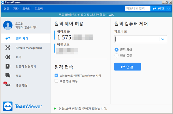 원격 제어를 이야기할 때 빼놓을 수 없는 프로그램이 바로 팀뷰어이다. 설치 후 제어될 컴퓨터의 ID와 생성된 비밀번호만 있으면 어디에서나 원격 접속해서 마치 내 PC를 사용하고 있는 것처럼 완전하게 컨트롤할 수 있다. 팀뷰어는 윈도우 PC 사용자용으로 잘 알려져 있지만, 윈도우뿐만 아니라 맥OS와 리눅스, 크롬OS에서도 사용할 수 있으며, 안드로이드와 iOS용도 출시되어 있다. 윈도우 모바일과 라즈베리 파이용까지 있다는 것을 알면 운영체제 지원에 대해서는 더 이상 언급할 필요가 없을 정도다.