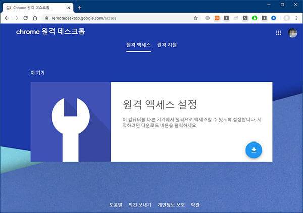 구글이 만든 원격 제어 프로그램인 크롬 원격 데스크톱은 이름에서도 알 수 있듯이 PC에서 사용하기 위해서는 크롬 브라우저가 필요하다. 크롬 웹 브라우저 주소창에 remotedesktop.google.com/access를 입력하면 크롬 원격 데스크톱 화면이 나타나는데, 여기에서 원격 액세스 설정 다운로드를 눌러 크롬 웹 스토어에 있는 Chrome Remote Desktop 확장 프로그램을 설치해야 한다. 설치 후 원격 액세스와 원격 지원을 선택해서 PC를 다른 사용자에게 공유하거나 다른 PC를 원격으로 제어할 수 있다.