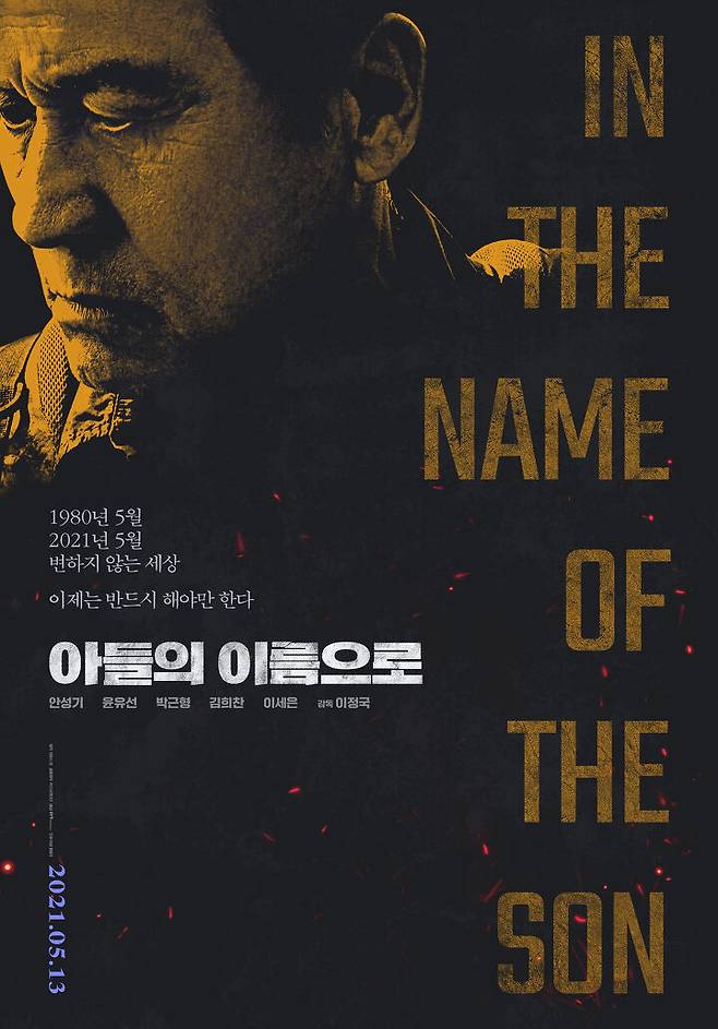 <아들의 이름으로>는 1980년 5월의 광주를 잊지 못하고 괴로움 속에 살아가던 주인공 오채근(안성기)이 소중한 아들과의 약속을 지키기 위해 반성 없이 호의호식하며 살아가는 이들에게 복수를 하기로 마음먹고 당시의 책임자 중 한 사람이었던 박기준(박근형)에게 접근하는 내용을 담았다.