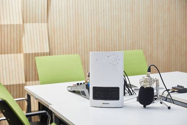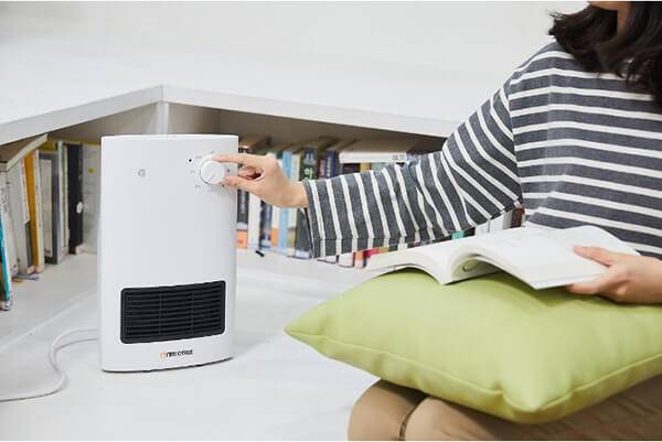 이러한 히터를 'PTC 히터'라고 하는데, 온도가 적정 이상으로 올라가면 자체적으로 전류의 양을 줄여 온도를 적정 수준으로 유지시키기 때문에 전력 소모가 적고 고온으로 위한 화재 위험이 없다. 또한 상단부가 손잡이 형태로 움푹 파여 있어 온풍기를 이동시키기가 수월하다.
