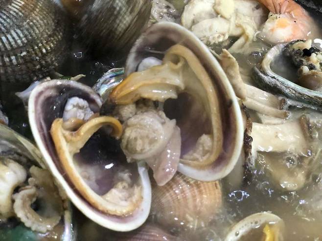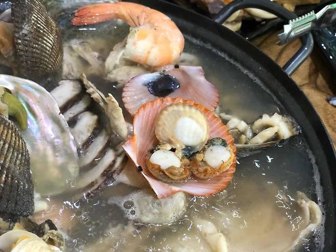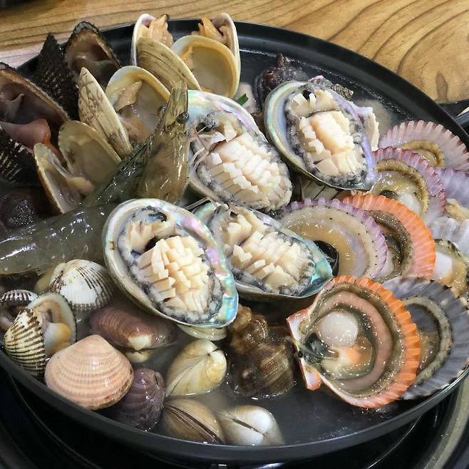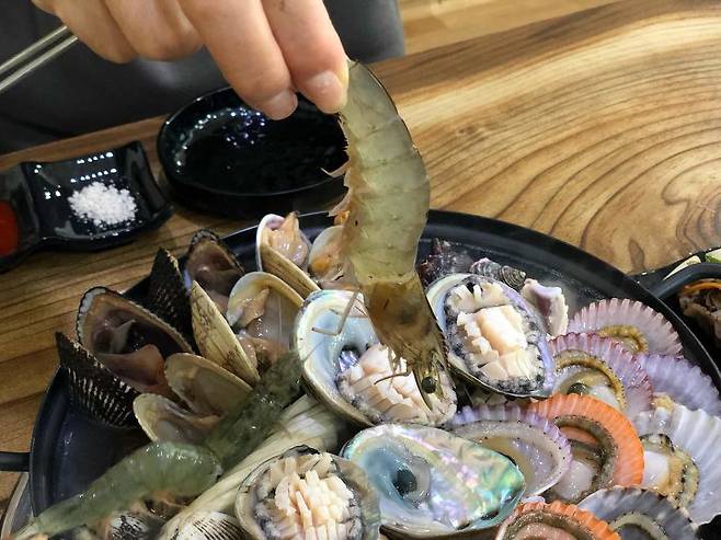 다먹고 나면 야채랑 칼국수 또는 죽 추가해서 먹을 수 있는데 돈이 안아까워요. 사장님이 너무 친절하시고 뿔소라는 가져가시더니 손질해서 다시 갖다주셨고, 전복이랑 생새우는 처음에 끓이기전에 그냥 회로 먹어도 된다고 하셨어요. 아무 간이 안되어있어 테이블에 있는 천연소금으로 간 하면 된다고 했는데 끓일수록 조개나 해산물 육수가 우러나와서 간을 따로 할 필요가 없어요.