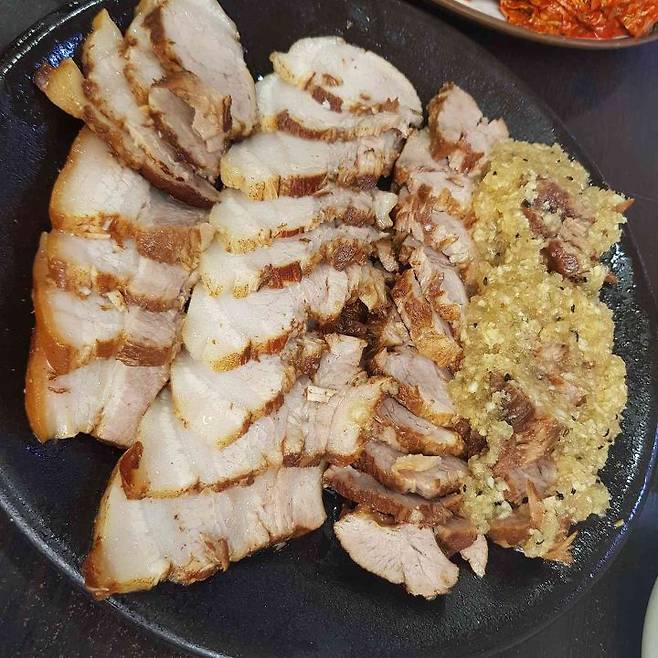 보쌈을 주문하면 한쪽에 양념된 다진마늘을 올려주시는데 진심 'JMT' 입니다. 보쌈고기는 너무 부드럽고 잡내가 없어 매우 맛있는데 마늘양념이 입맛을 확~ 사로잡아줍니다.