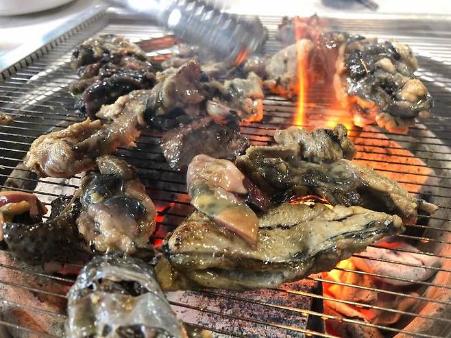 쫄깃하고 담백한 식감과 참숯 향이 어우러져 잡내도 없어 맛이 아주 기가막힌다.