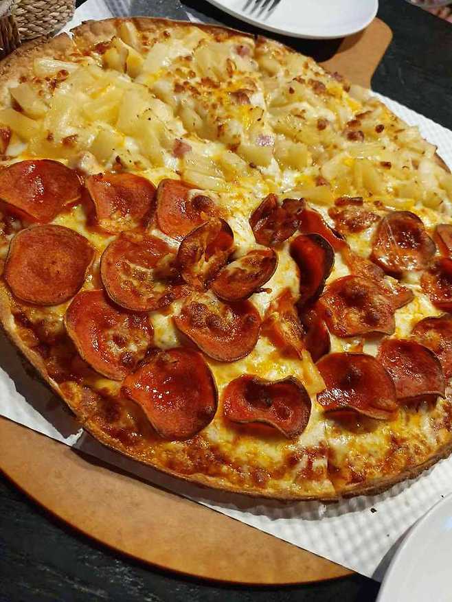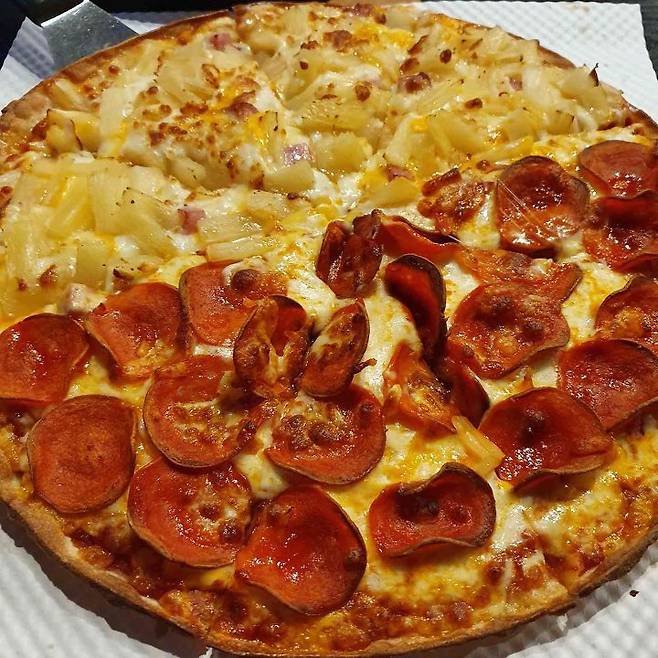 피자는 좋아하는편인데 토핑이 풍부한 피자를 좋아해서 페퍼로니는 거의 안먹었어요 그간. 그리고 따뜻한 과일 좋아하지도않고 피자랑 어울린다는 생각도 안해서 하와이안도 싫어했는데