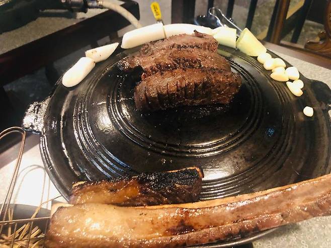 특히 직화된 삼겹살과 고기를 같이 먹었을때 입에서 느끼는 만족감은 상당히 좋은 편입니다.