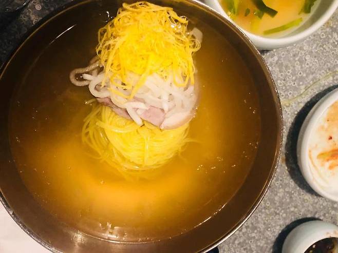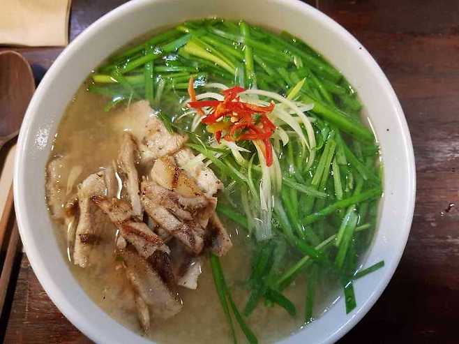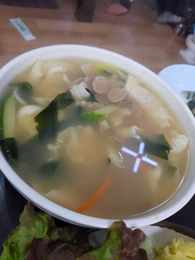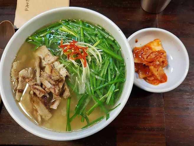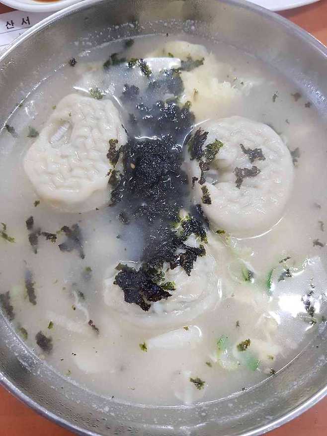 다른 다코님들 평가 사진을 보면 국물이 맑은 편인데, 제가 주문한 마늘고기국수는 좀 더 뽀얗게 보였습니다.