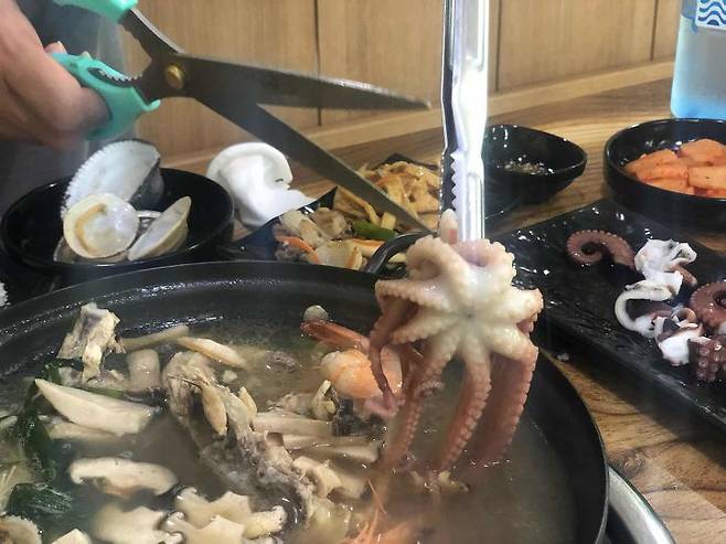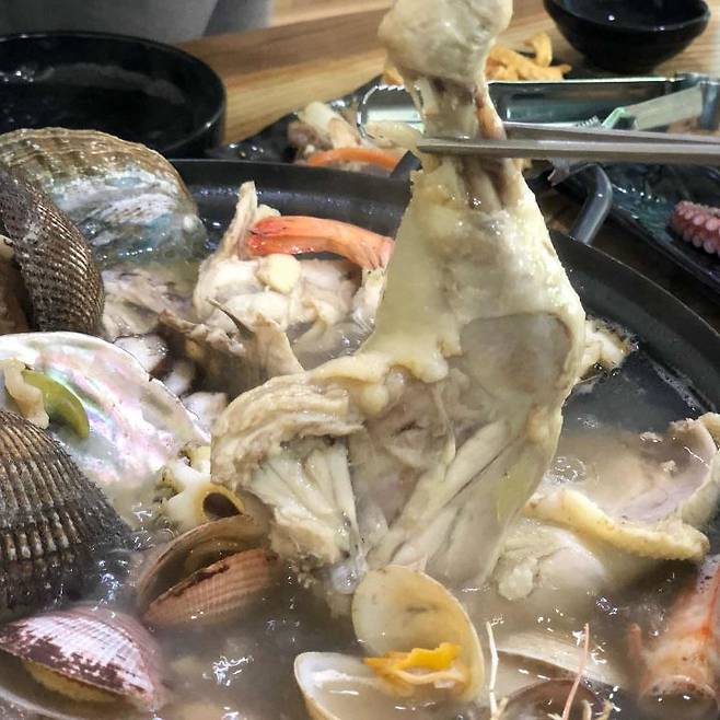 여기 진짜 미쳤어요 전복해신탕 38,000원에 전복도 엄청 많이, 새우, 닭한마리, 가리비, 뿔소라, 무슨 조개 다양하게 등등 엄청 많이 들어가있어요.