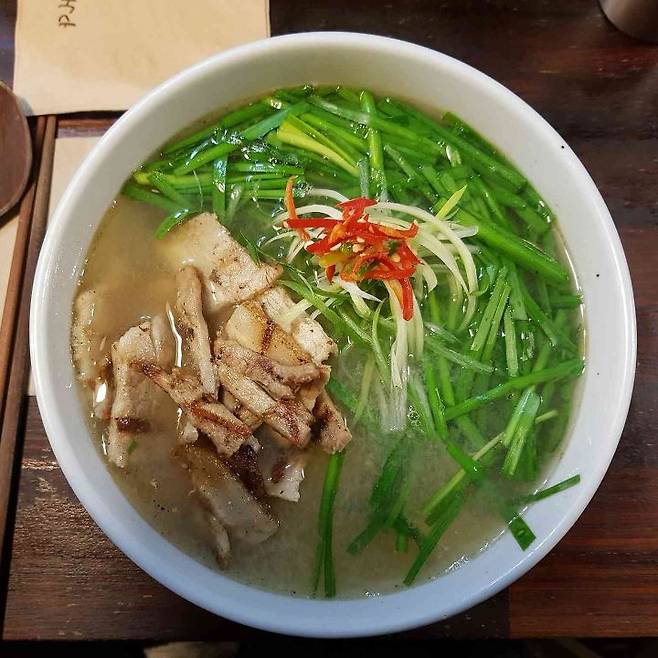 삼겹살의 쫄깃함과 직화향이 더해지면서, 보통 국수를 먹을 때 느끼지 못하는 식감과 맛을 선사하는 것 같습니다.