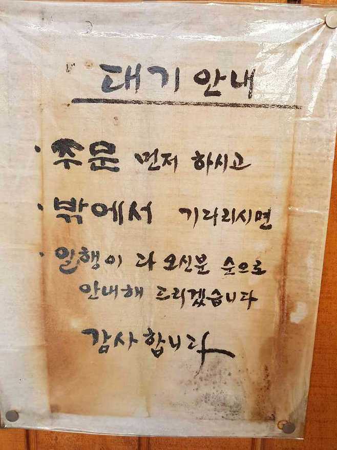 특히 점심 시간에는 11시 반에 가도 자리에 앉을 수 있을지 담보하기 어렵다. 사람은 북적대는데 좌석은 매우 좁고 바닥에 양반다리로 먹어야 하며, 게다가 김치와 단무지는 셀프로 가져와야 하는 환경은 참 쉽지 않다.