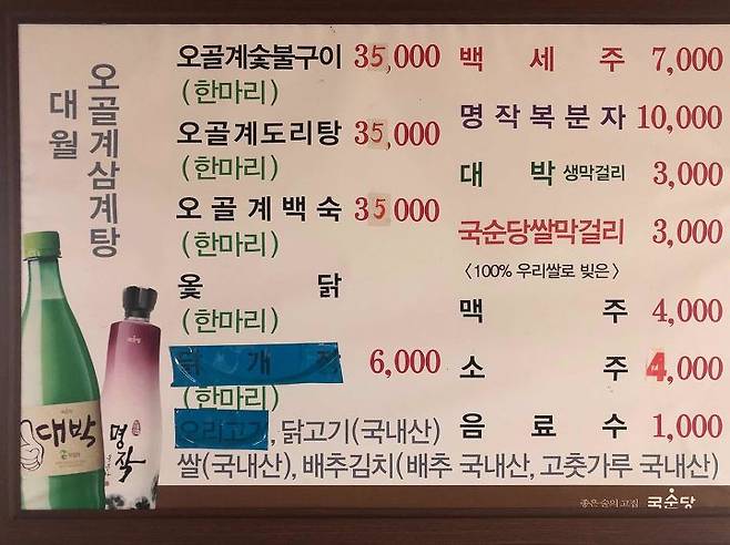 이중에서 가장 메인인 메뉴는 오골계 숯불구이...
