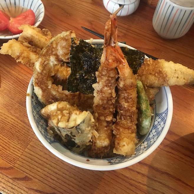 덮밥에 올라가는 여러 튀김들이 전부 맛있지만 특히 채소들이 맛있습니다. 꽈리고추 튀김 정말 맛있어요.