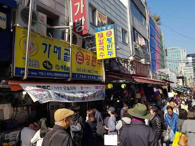 회현역 5번 출구 앞 남대문 시장 내에 위치한 유명한 만두집. 첫 만두가 나오는 8시 반 전부터 줄 서 있는 모습을 발견할 수 있다.