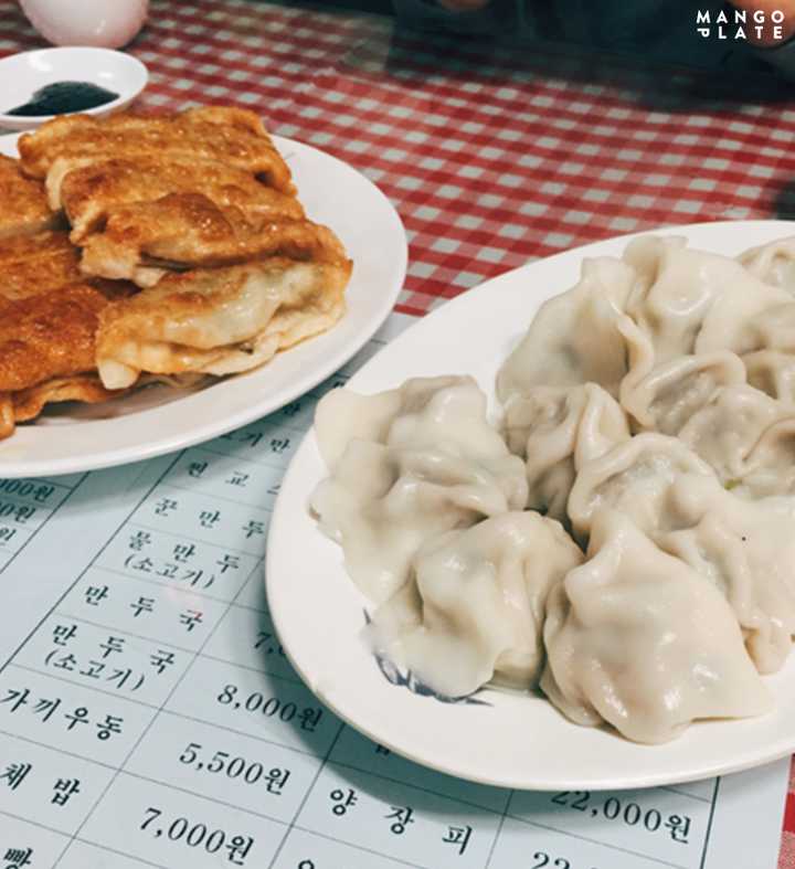 간판부터 엄청난 내공을 뿜는 중국식 만두 전문점 영생덕의 윤기가 자르르한 '꾼'만두! 바삭쫄깃한 피와 적당한 만두소의 조화가 훌륭해요. 접시당 10개입니다. 도톰한 피의 물만두는 생강의 맛이 빛을 발해요!