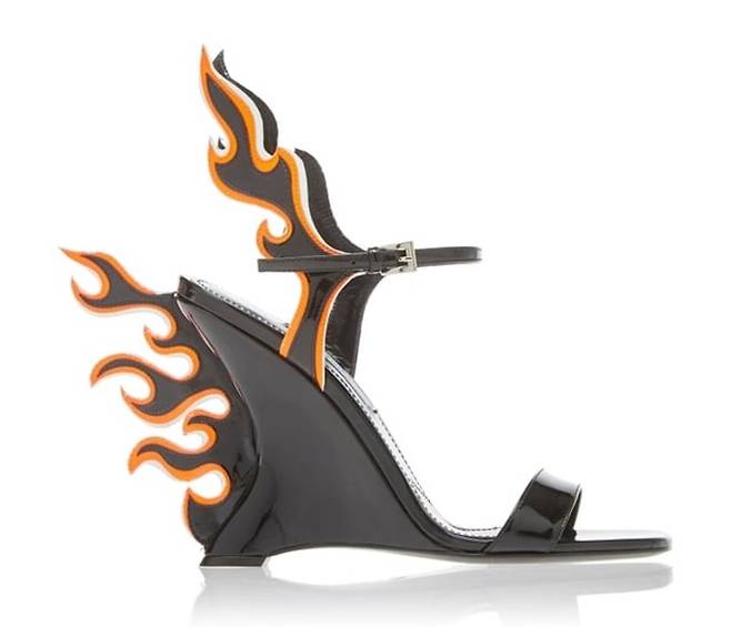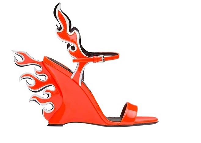 다수의 신발 브랜드들이 화염 프린트를 출시해 높은 판매율을 기록하고 있는 가운데, 이탈리아 럭셔리 하우스 프라다는 지난 2012 봄/여름 컬렉션에서 3차원적인 화염 힐을 최초로 선보여 눈길을 끌었다.