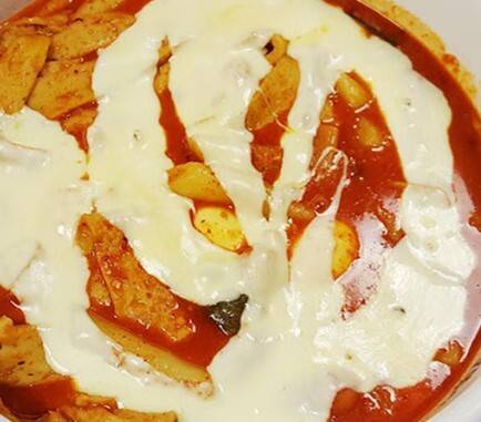 고춧가루 3스푼, 카레가루 1스푼, 미원 0.5스푼, 후추 1스푼, 설탕 3스푼, 고추장 1스푼, 떡 200g, 어묵, 대파 1대, 물 3컵, 모짜렐라 치즈