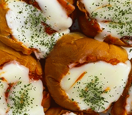 모닝빵, 토마토소스, 베이컨, 버섯, 모짜렐라 치즈