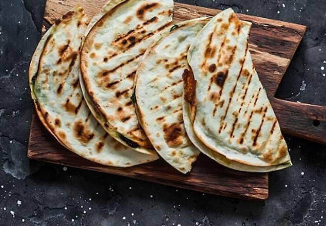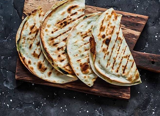 3. 또띠아 위에 토마토 소스를 발라줍니다.