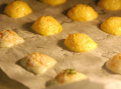 2. 종이 호일을 깔고 그 위에 치즈를 올려줍니다. 치즈가 부풀어 오르기 때문에 간격을 살짝 띄워줍니다.