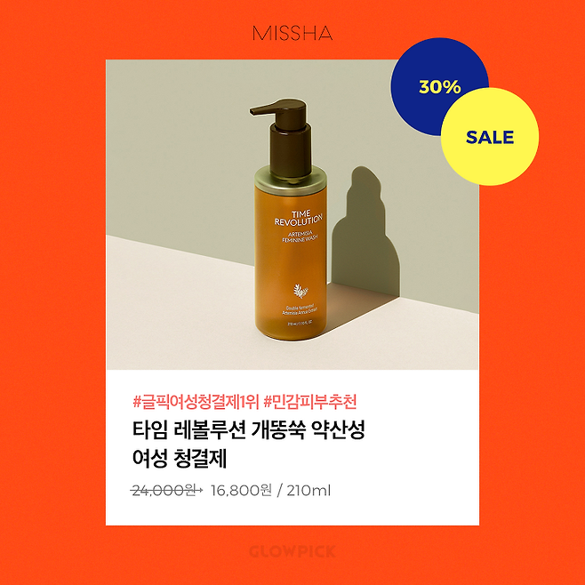** 타임 레볼루션 개똥쑥 약산성 여성 청결제 24,000원 -> 16,800원 (30% 할인) **