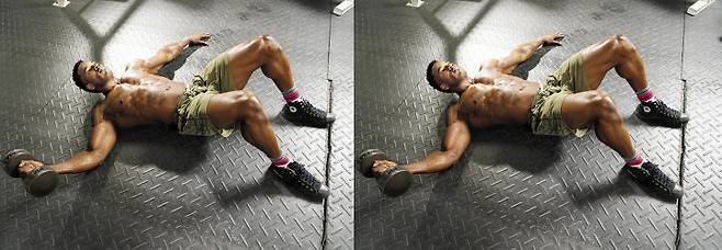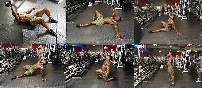 더 이상 헬스장 운동 기구를 사용하면서 시간의 압박을 느끼지 않아도 된다. 루틴은 빨리 끝나지만, 효과는 오래 지속된다. “덤벨이 하나밖에 없는 것은 불행 중 다행이라고 할수 있습니다.” 라이노가 말한다. “근육의 불균형을 맞추고 코어 안정성 강화를 돕기 위해 단독적인 운동과 비대칭 부하의 동작을 할 수 있다는 그럴싸한 구실이 되죠. 두 가지 운동 대부분의 동작을 한 번에 한 쪽씩 하게 되는데 이것은 기능적인 힘을 기르는 데 매우 좋습니다.”