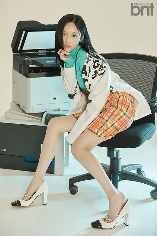 아우터 : 메종 마르지엘라 바이 육스(Maison Margiela by YOOX.COM) / 상의 : 잉크(EENK) / 치마 : 채뉴욕(CHAEnewyork) / 신발 : 지니킴(JINNY KIM)