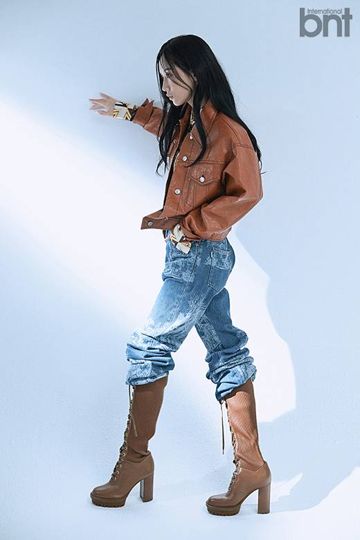 아우터, 상의, 바지 : 엠에스지엠(MSGM) / 신발 : 지안비토 로시(GIANVITO ROSSI)