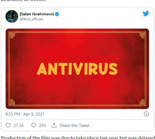 이브라히모비치는 자신의 SNS를 통해 안티바이러스 문구를 띄우며 영화를 '셀프 홍보'하는 모습도 보이는 중이다.